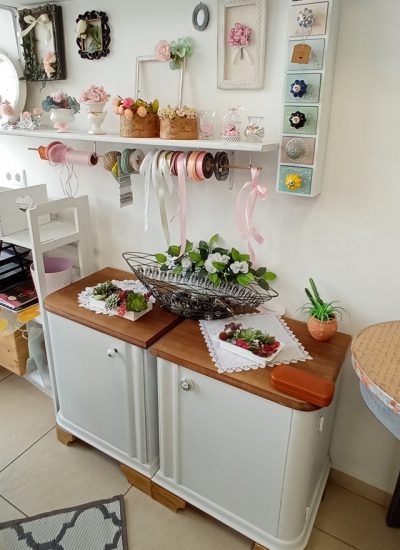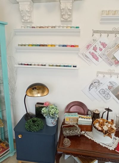 Az üzletben nem csak vásárolni tudtok, hanem látványműhelyként is szolgál, itt tartja Zsuzsi a bútorfestő és egyéb alkotó foglalkozásokat, illetve itt festi át egyedi megbízásokra a bútorokat. Ha erre jártok, meg is tudjátok lesni, hogy készül egy-egy bútor. 🙂