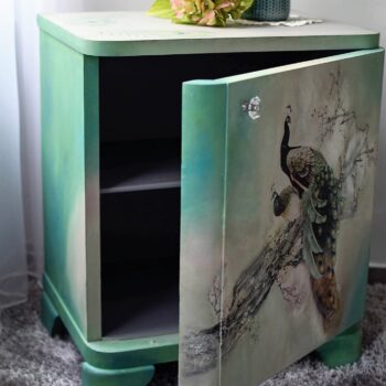 VintagÉvi Design alkotása ez a csodálatos kis szekrény, amely HH festék termékek felhasználásával, képtranszfer és pittorico technikával kapott új életet.