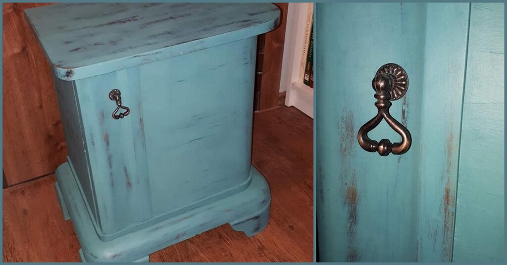 HH Festék gyönyörű Smaragd krétafestékjét választottam hozzá, és HH színtelen bútorwaxot használtam, ami narancs-fahéj illatú így imádtam vele dolgozni.