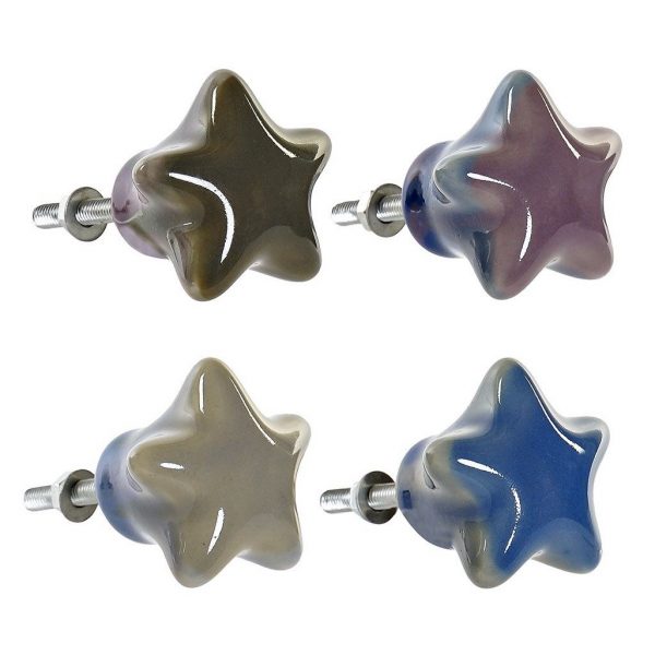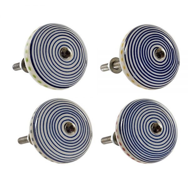 Kerámia bútorgomb, kék csíkos, sárga pöttyös