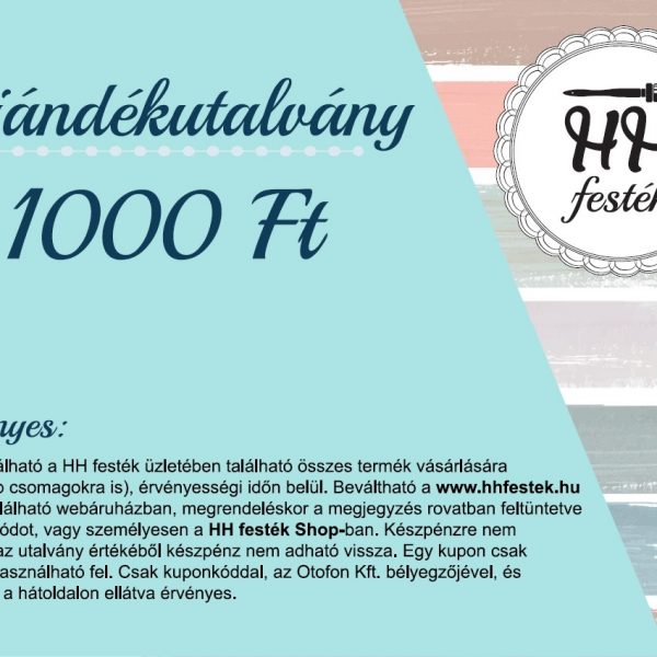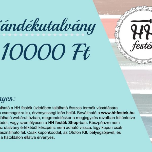 A HH festék Shop-ban található összes termék vásárlására (workshop csomagokra is) használható fel, érvényességi időn belül.
